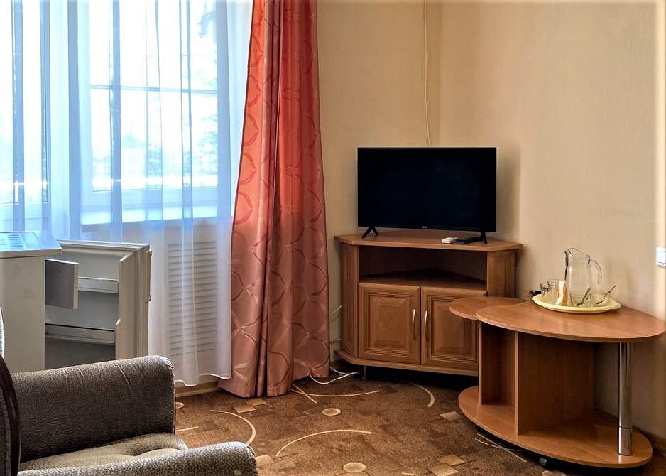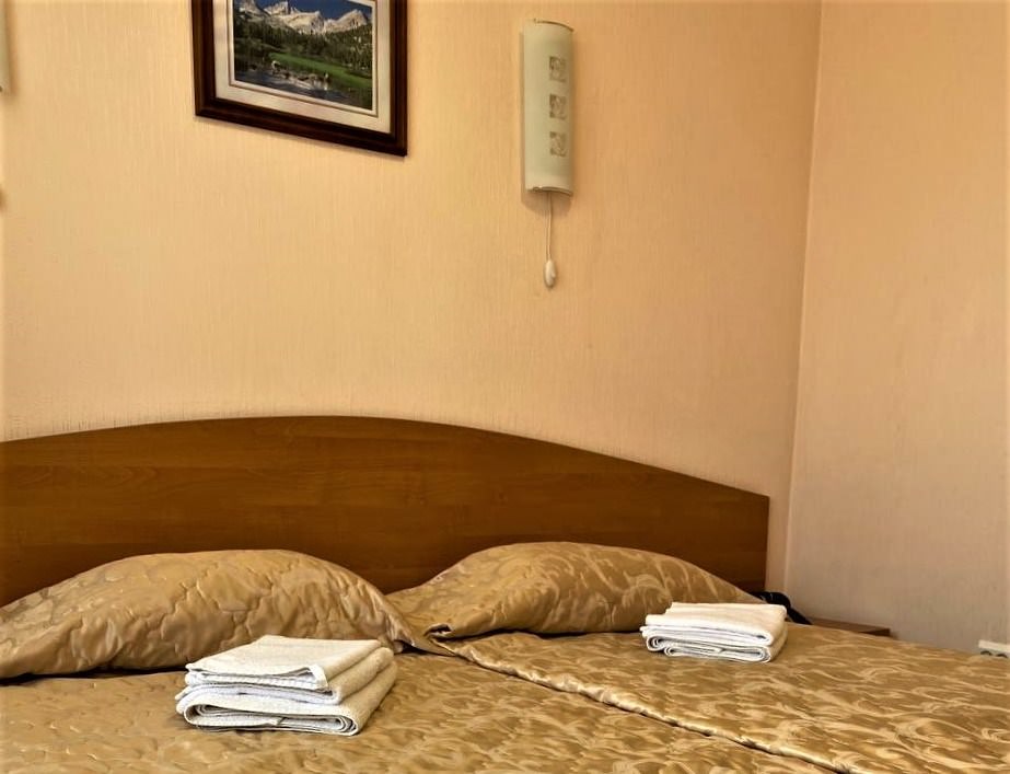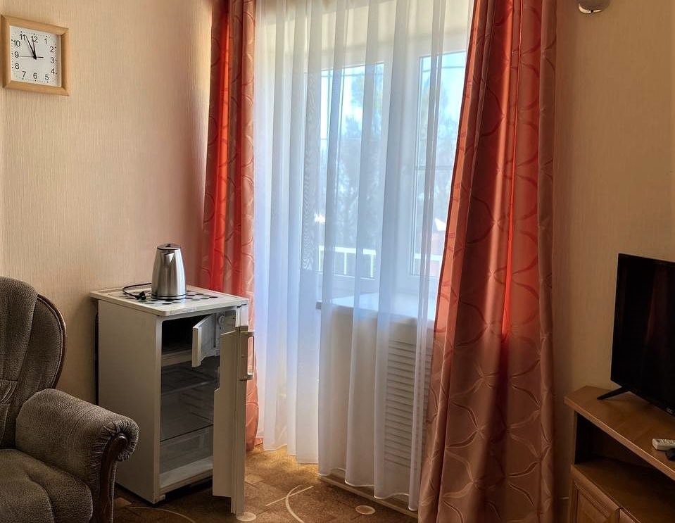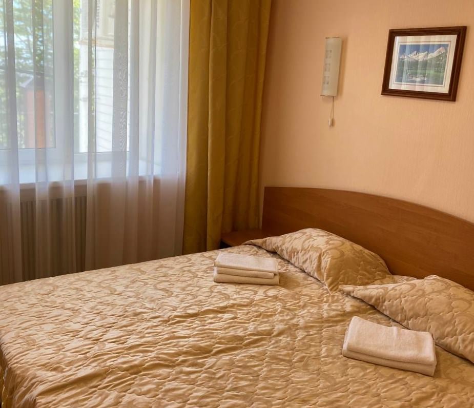 Площадь номера - 20 кв.м. 2 осн. места. 1 доп. место. Балкон. Мебель: диван раскладной, зеркало, комод, кровать двуспальная, столик журнальный, шкаф. Оборудование: кондиционер, сейф, телевизор, холодильник, электрочайник. Санузел: с душевой кабиной, фен. Сервис: Wi-Fi бесплатно, смена полотенец, смена постельного белья, уборка номера.